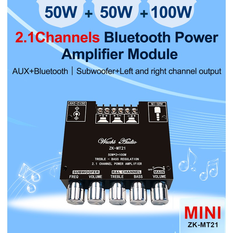 Zk-mt21 Estéreo Placa Amplificador 2.1 Bluetooth 100w Rms Presentes