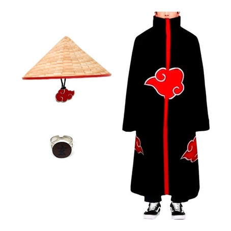 Cosplay Manto Akatsuki Zetsu + Chapéu Akatsuki + Anel Colar