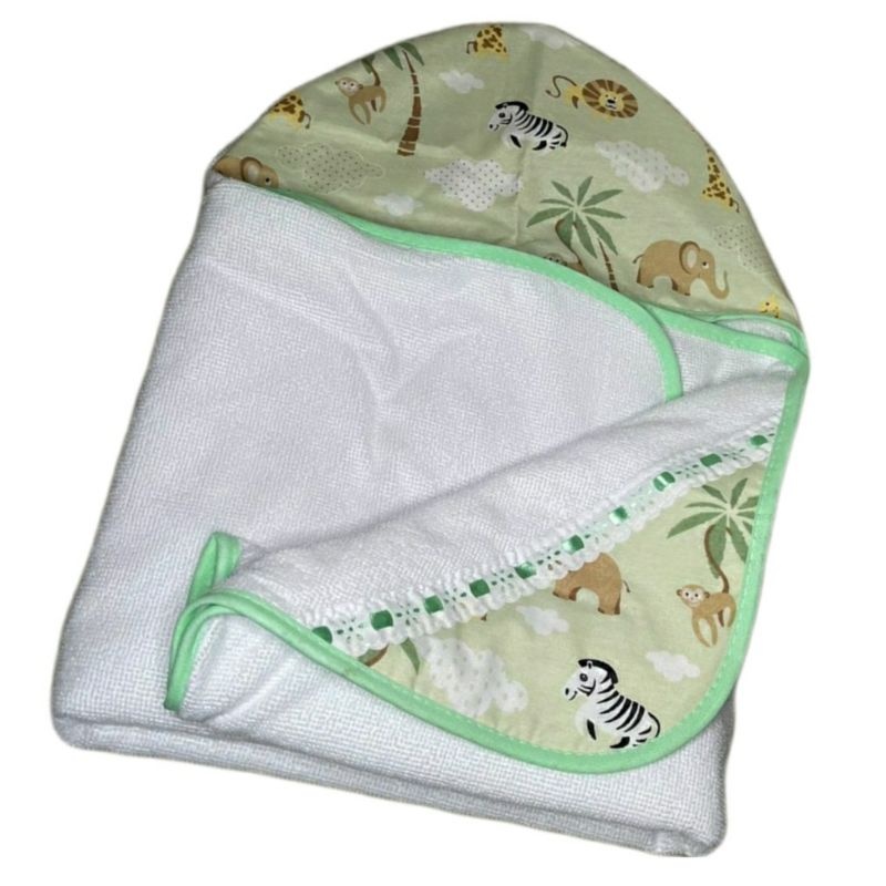 Toalha De Banho Bebê Dupla Face Com Capuz Forrada Algodão