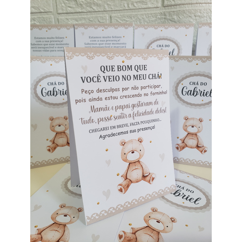 Kit Centro de mesa personalizado para festas Chá de bebê e aniversário infantil Chá fraldas revelação tema URSINHOS BEGE
