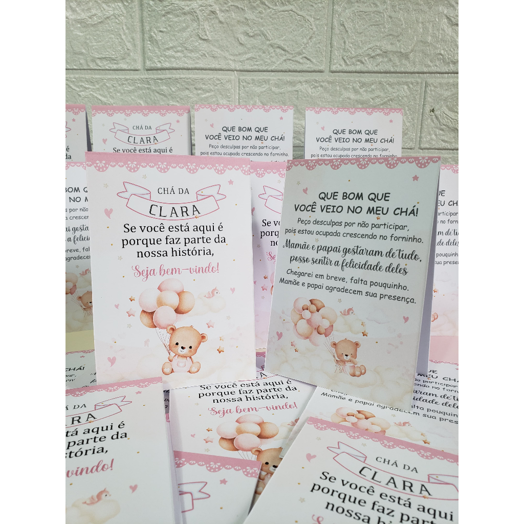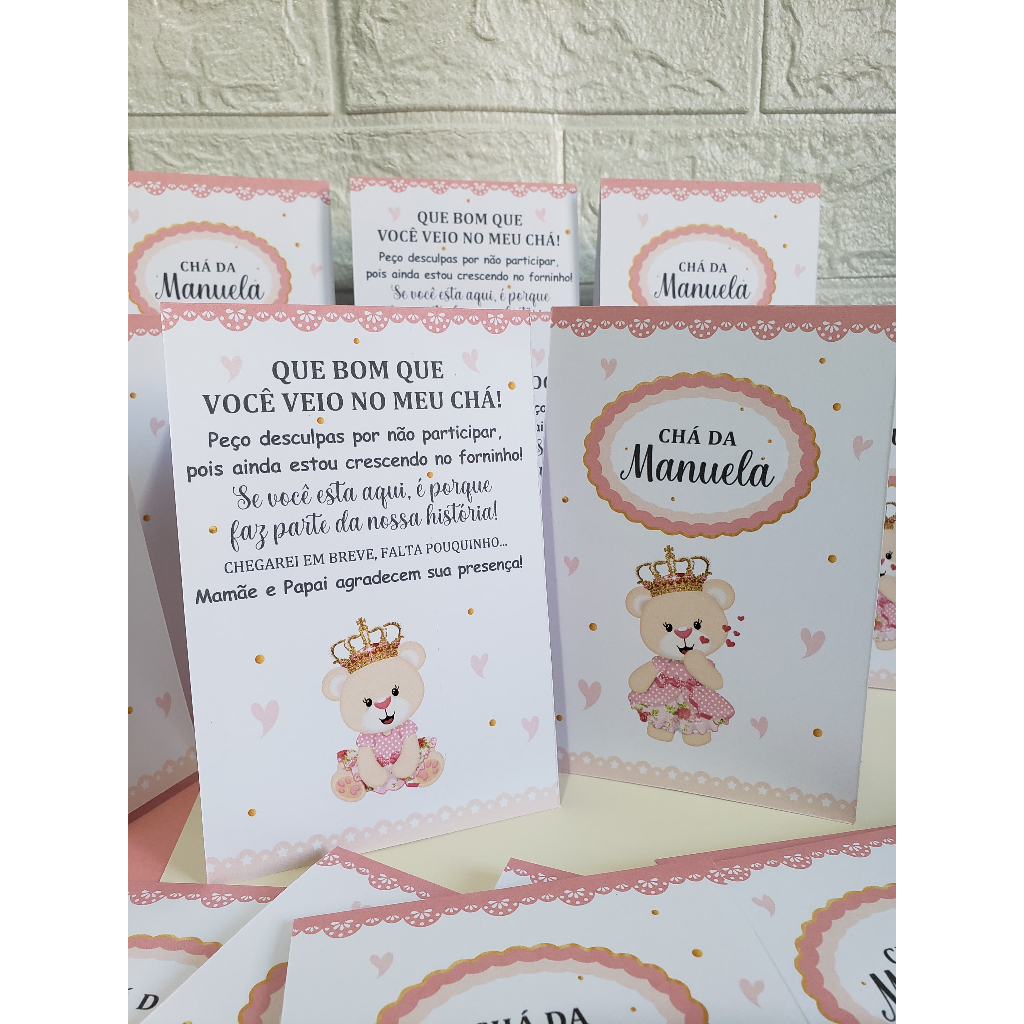 Kit Centro de mesa agradecimento personalizado Ursinha Chá de Bebê - Chá Fraldas - Menina Ursinhos Realeza