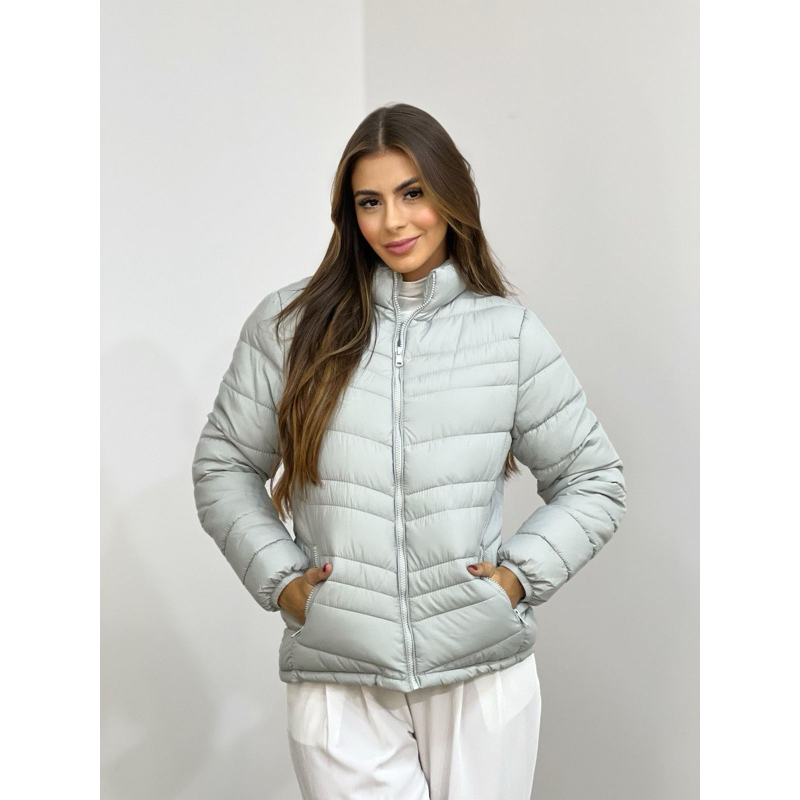 Jaqueta Feminina Puffer Forrada Apeluciada Sem Capuz