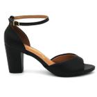 Sandália Feminina Vizzano Salto Médio Grosso Bloco 5cm Tira Preto Confortável Original