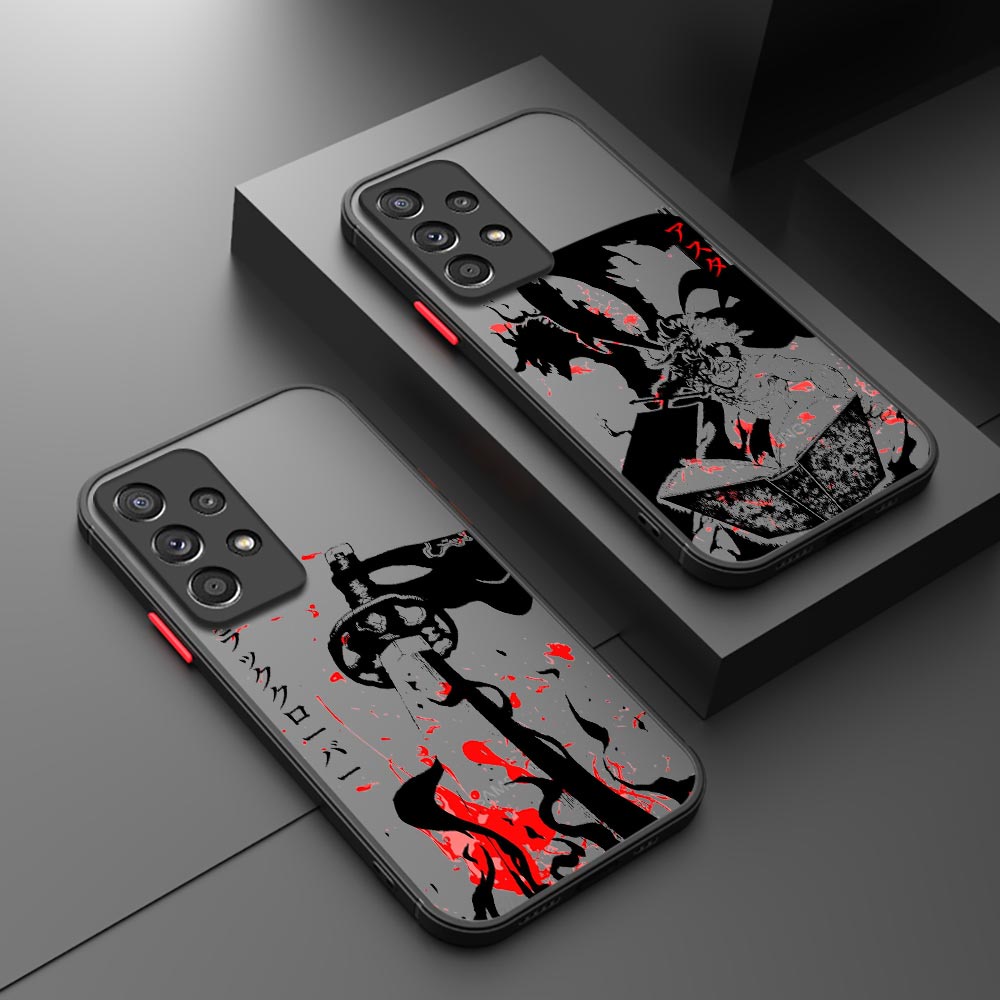 Capa De Celular Preta Fosca De Trevo Do Japão Para Samsung Galaxy A73 A72 A71 A70 A53 A52 A51 A50 A42 A33 A32 A31 A30 A2 A21S A20S A13 A12 A11 A10S A10S A10 A03S 5G