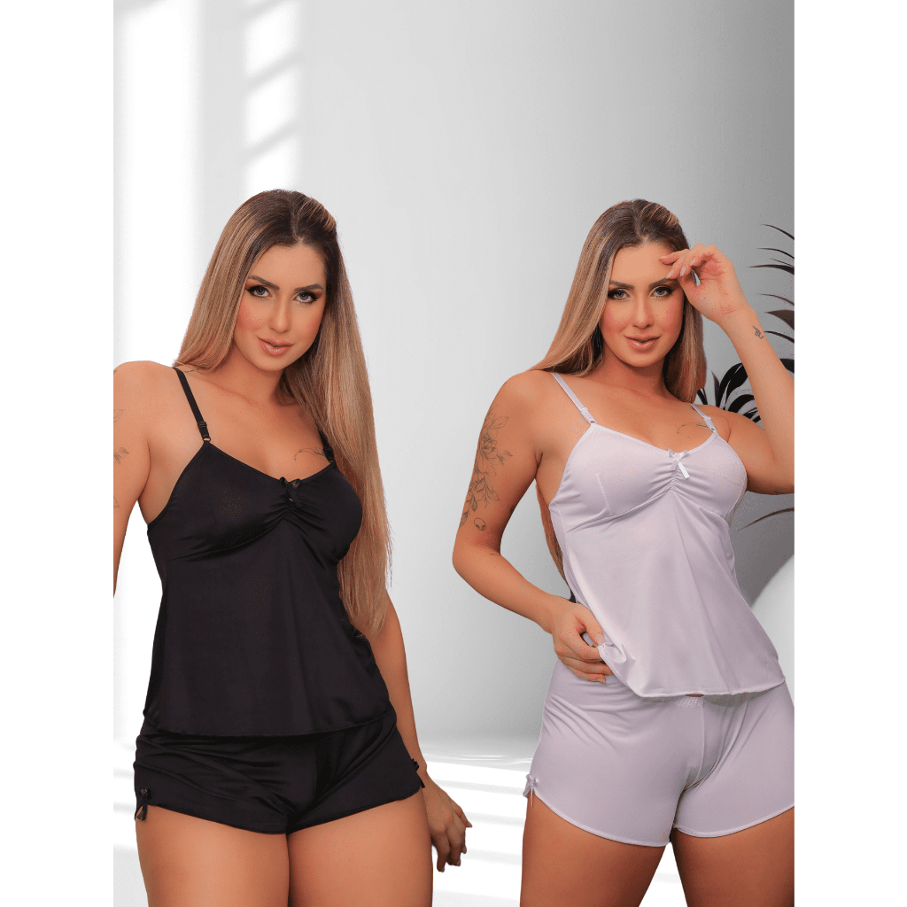 KIT 2 SHORT DOLL BABY DOLL PIJAMA LISO COM REGULAGEM DE DORMIR SENSUAL CURTO