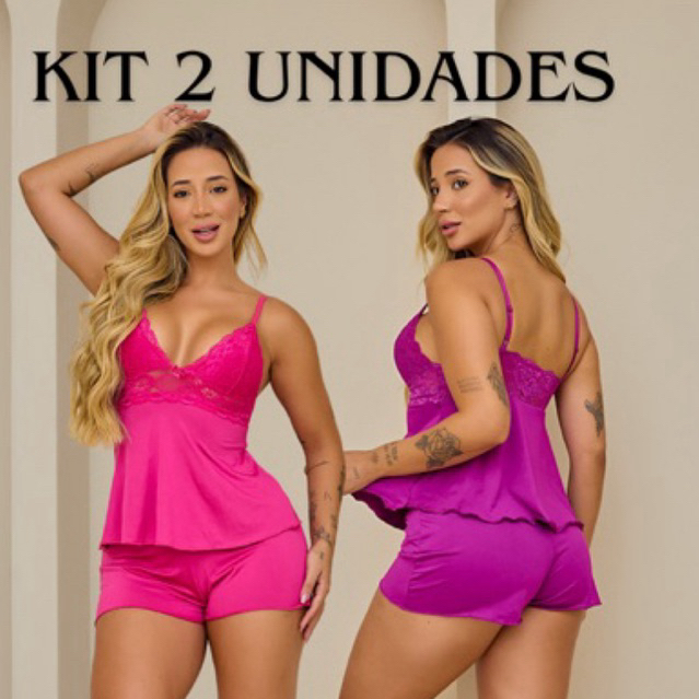Kit 2 Short Doll Feminino Pijama Baby Doll Sensual em Renda Microfibra