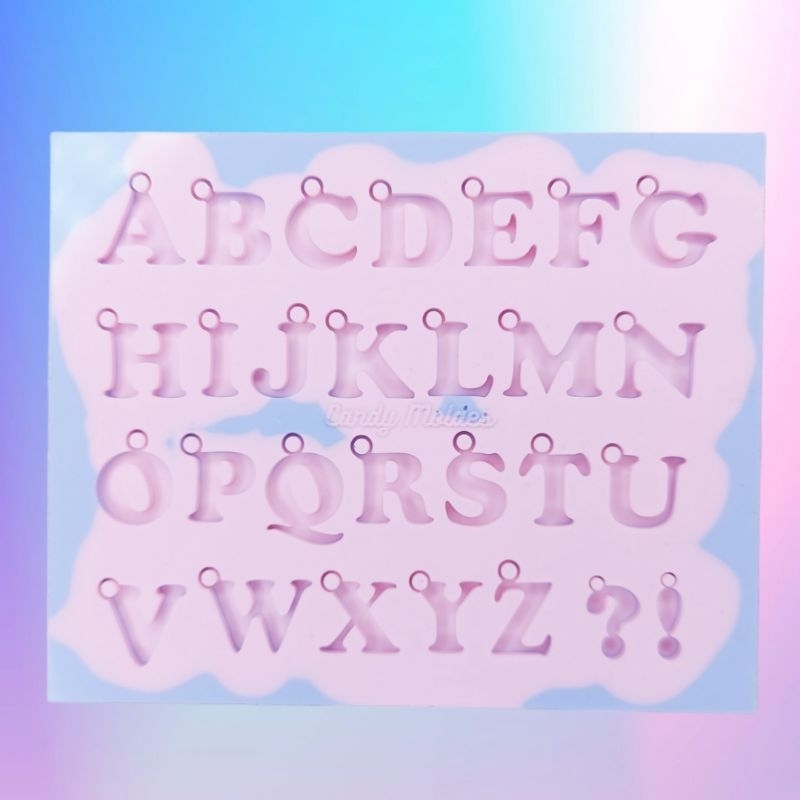Molde de Silicone Mini Alfabeto Com Furo 1,5cm resina epóxi artesanato