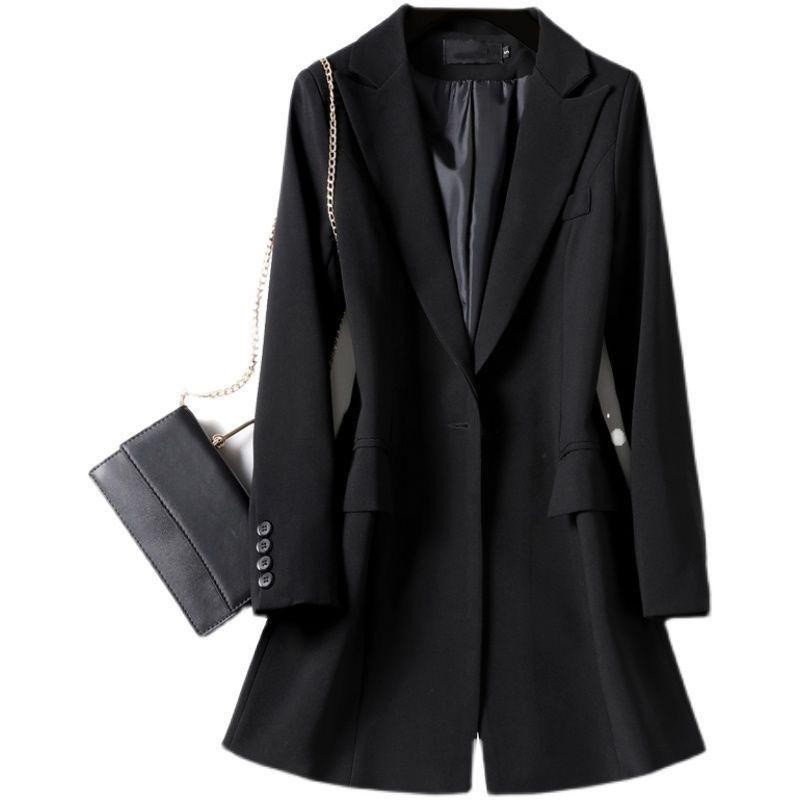 S-3XL Casaco Blazer Feminino Long Slim Spring Autumn Fashion Casual Elegante Escritório Formal De Trabalho Preto