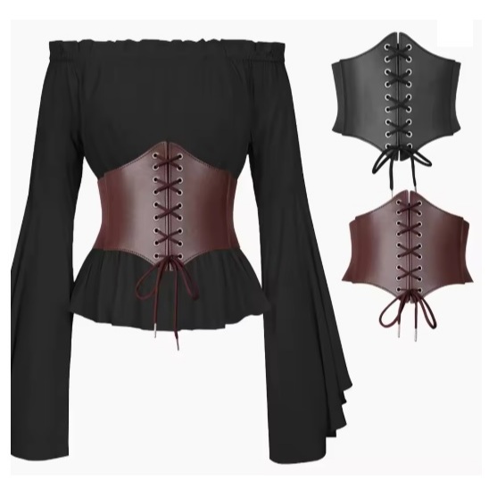 Cinto preto com Fivelas estilo Corset Couro Sintético gotico steampunk goth ajustavel medieval