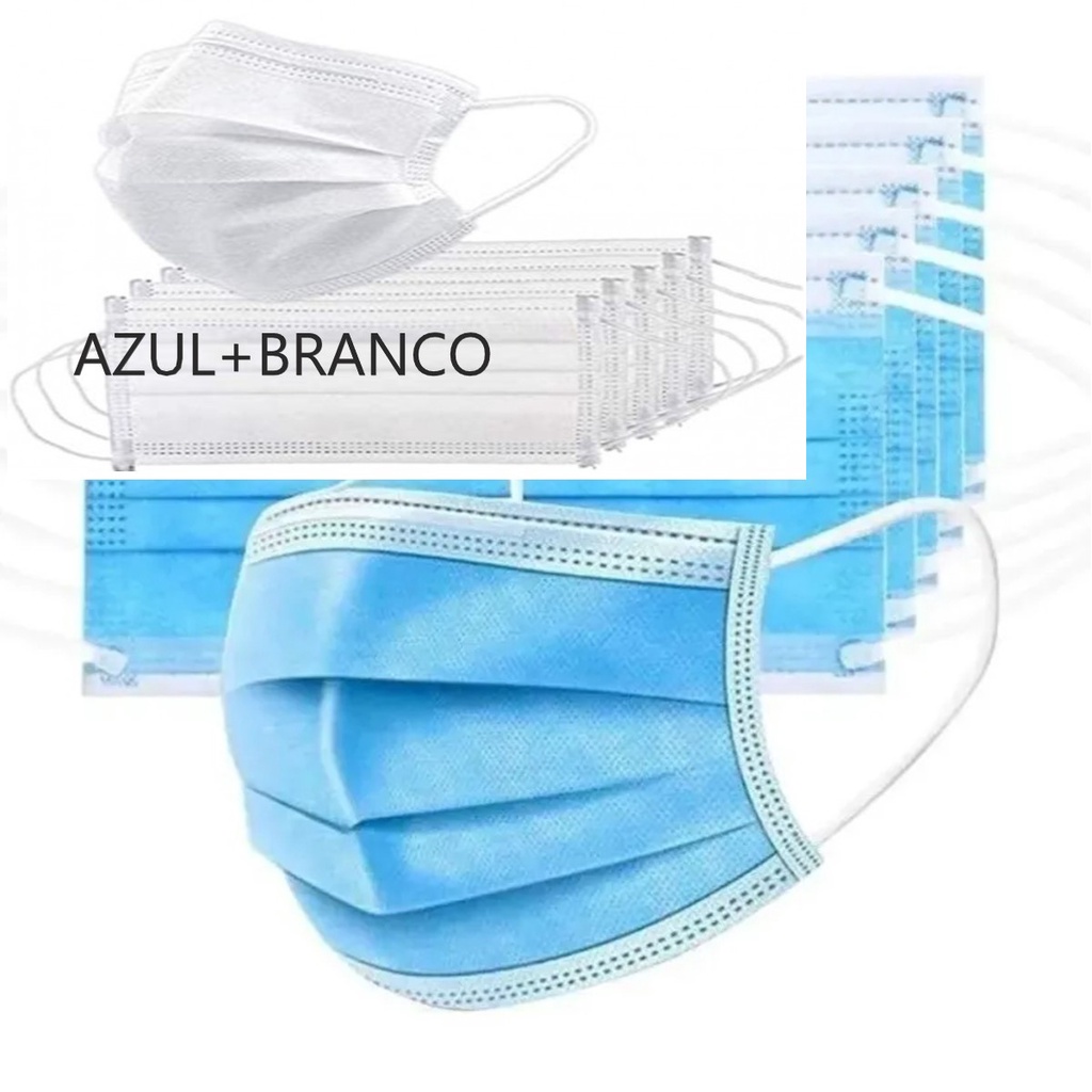 KIT 100 Máscara Descartável De Proteção Facial Tripla Preto Azul Rosa Branca