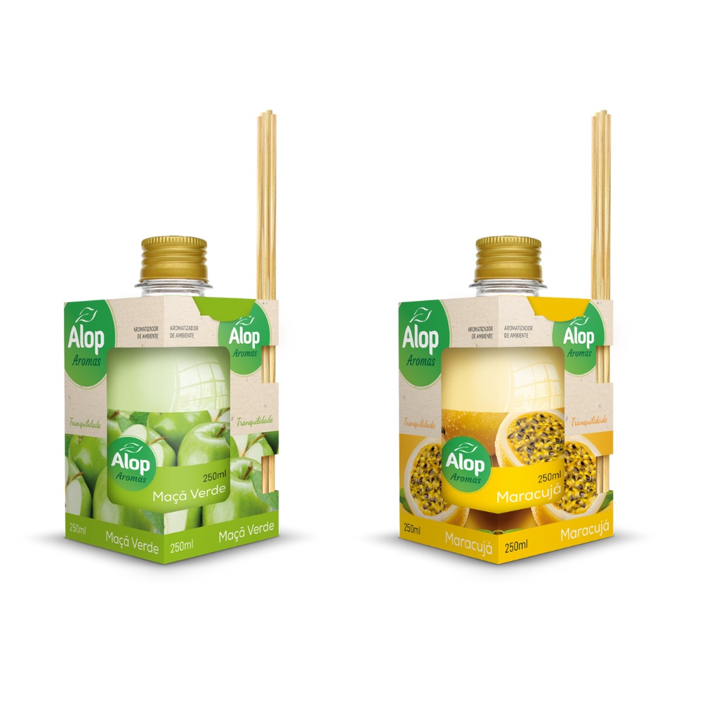 Kit 2 Cheirinho Para Casa Aromas Maçã Verde e Maracujá 250 ml ALOP