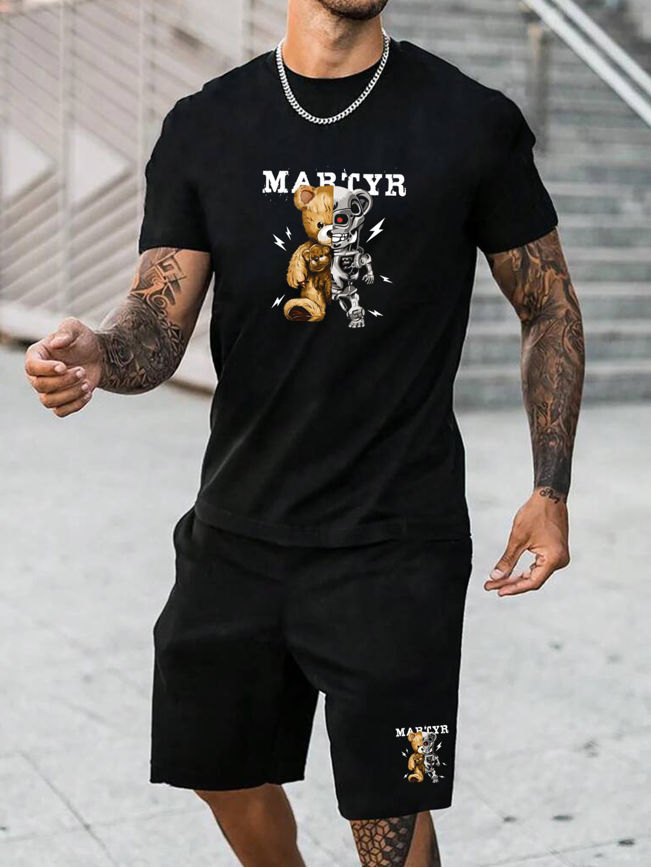 Conjunto De Roupas Masculinas De Verão 3D Camiseta Impressa Calções De 2 Peças Fato De Treino Casual Love Eagle Sportw