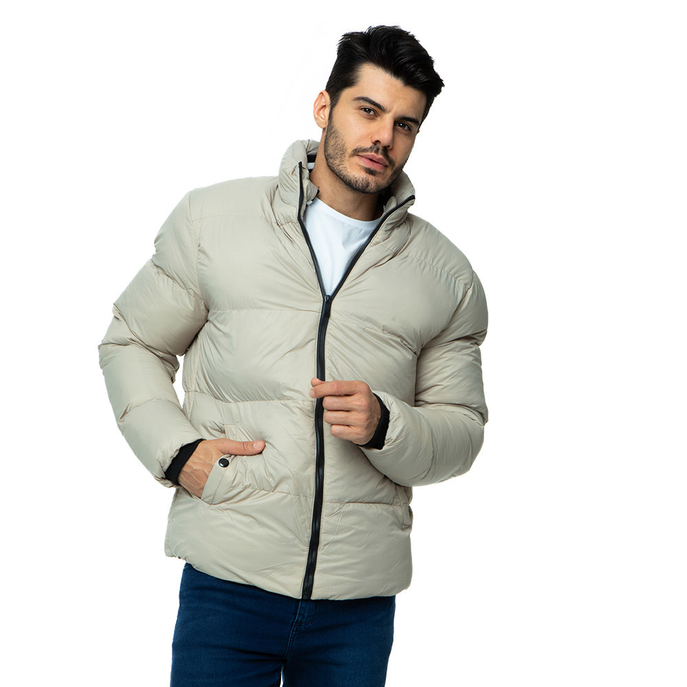 Jaqueta Puffer Masculina Acolchoada Sem Capuz Forrada Com Pelinho Bege