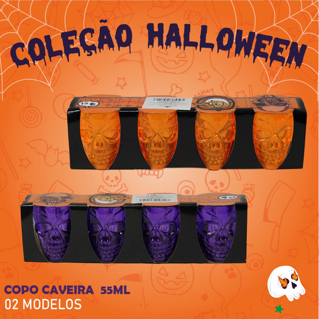 Copo Personalizado Halloween Caveira 55ml Plástico Kit Com 4 Unidades Para Shot