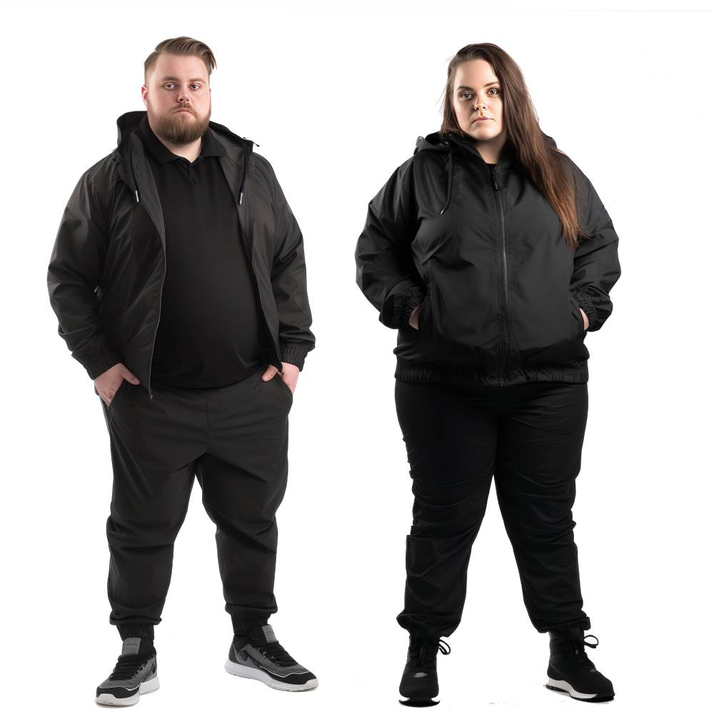 Conjunto Plus Size Masculina e Feminino com Jaqueta e Calças Extra Grandes Com Elastano Preta