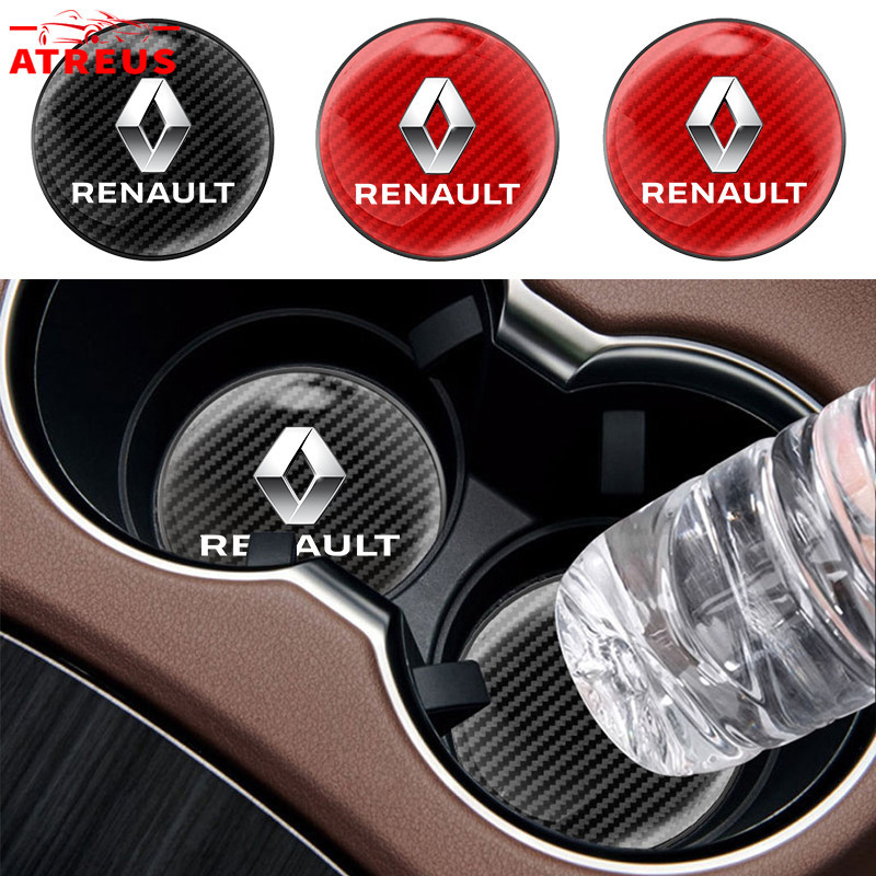1Pc Renault Porta-Copos Redondos De Fibra De Carbono Com Almofada De Antiderrapante Para Kwid Duster Oroch Kardian Megane 2 Sandero ZOE Clio Fluence Logan Captur