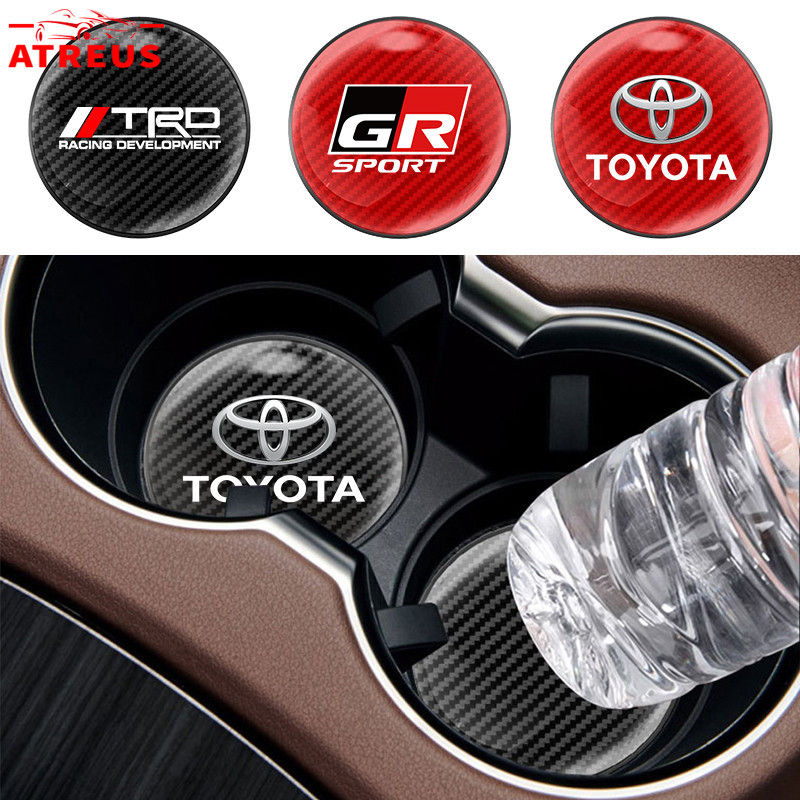 1Pc Toyota Porta-Copos Redondos De Fibra De Carbono Almofada Antiderrapante Para Toyota Corolla Cross Hilux SW4 RAV4 Yaris Sedan Hatch Etios