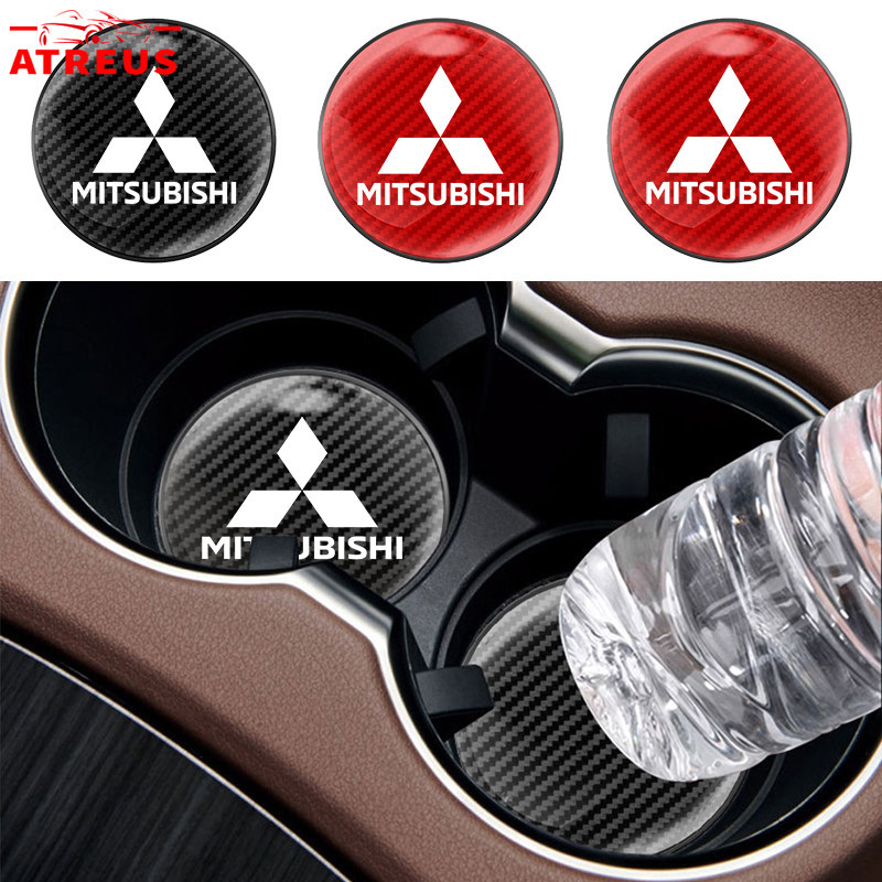 1Pc Mitsubishi Porta-Copos Redondos De Fibra De Carbono Almofada Antiderrapante Para Mitsubishi Lancer Asx L200 Pajero Outlander Eclipse Cross