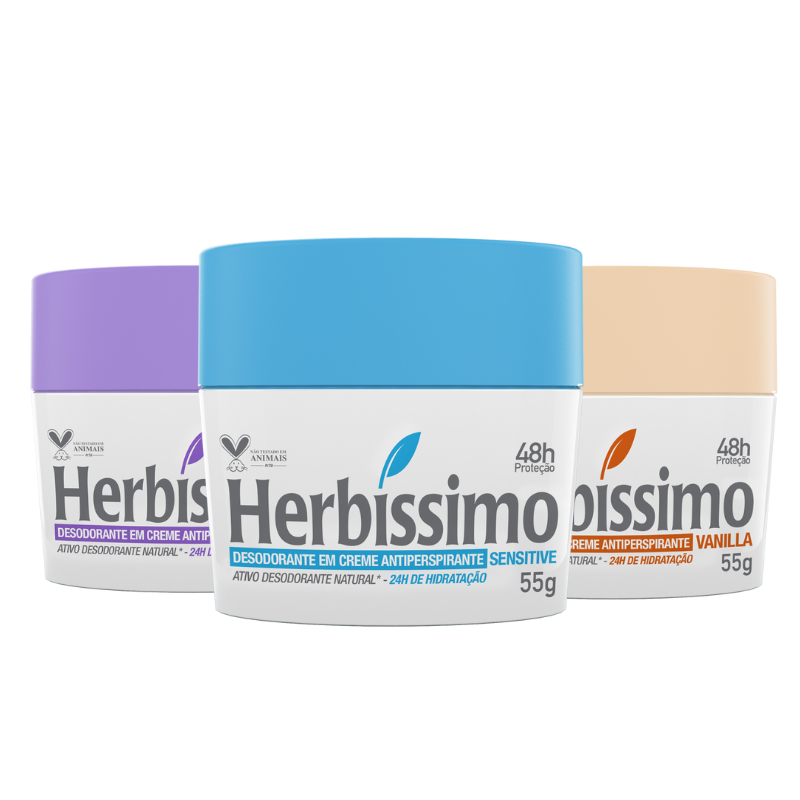 Kit Desodorante Creme Antitranspirante Herbissimo 55G Lavanda, Sensitive e Vanilla - 3 unidades