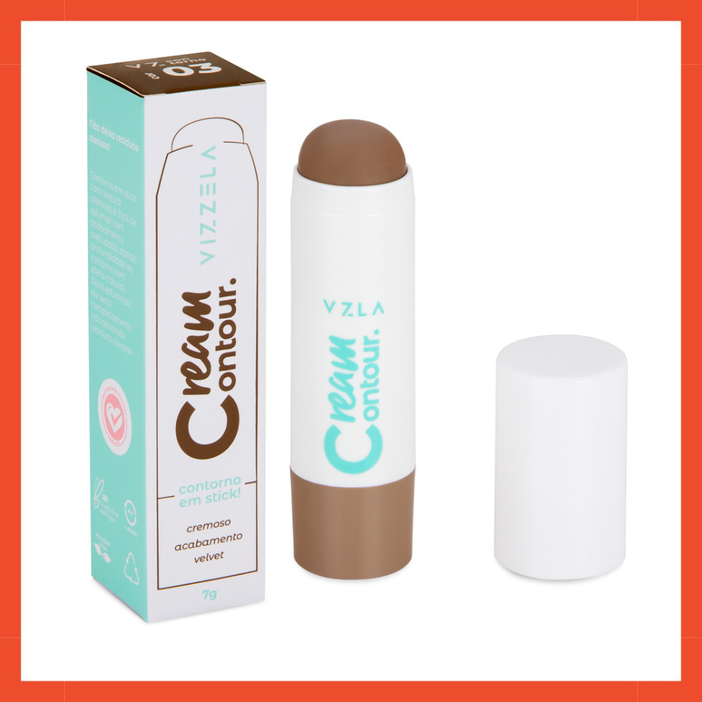 Vizzela Cream Contour Contorno em Stick (Contorno em Stick com textura cremosa e fácil de esfumar com acabamento aveludado)