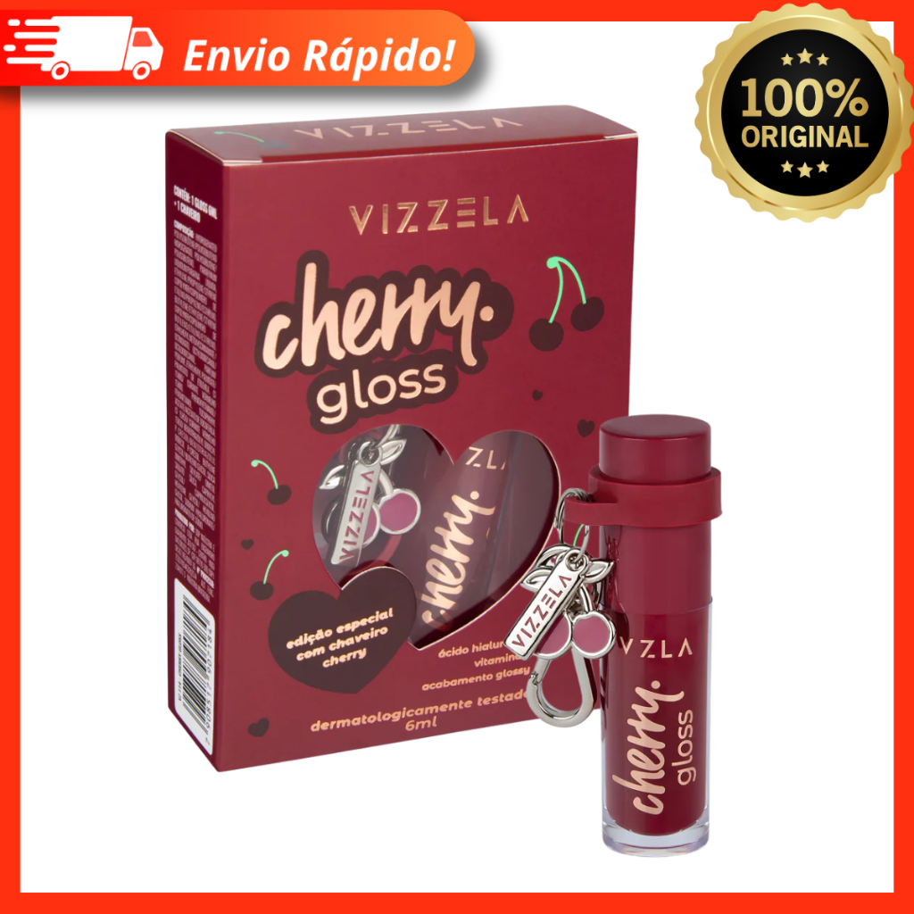 Gloss Labial Cherry Gloss Vizzela 6ml - Com Chaveiro Cherry