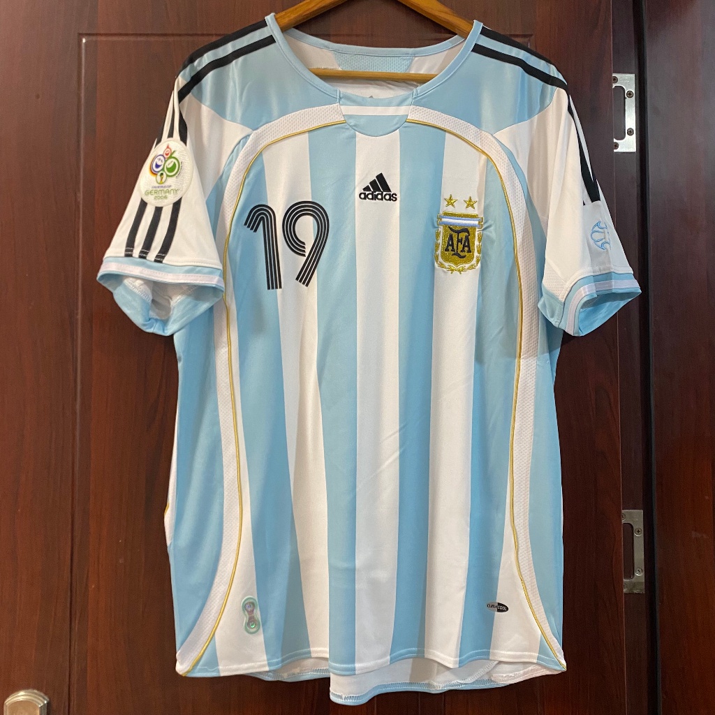 Copa Do Mundo Retro Clássico 2006 Argentina Home 10 Riquelme 19 Messi Uniforme De Futebol De Camiseta