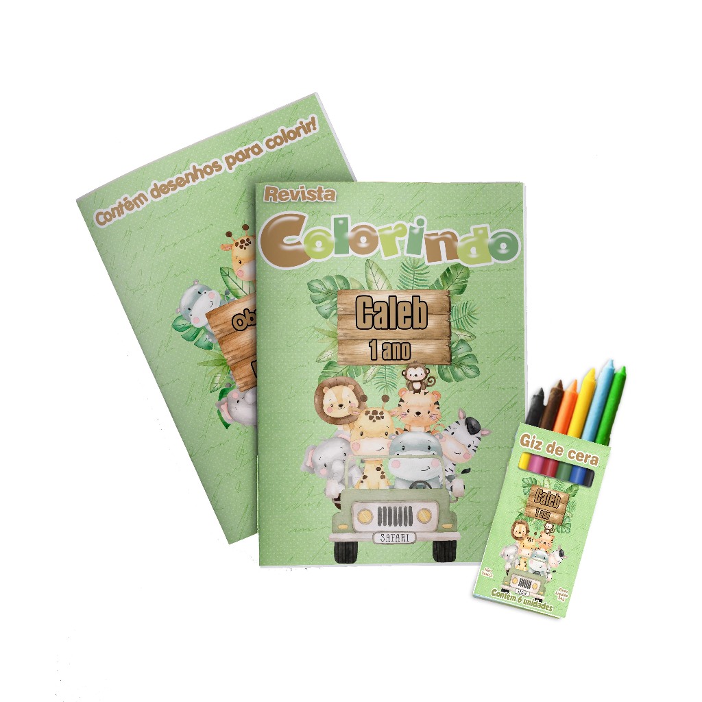 10 Kit Colorir E Giz De Cera Safari Personalizado lembrancinha 10x15