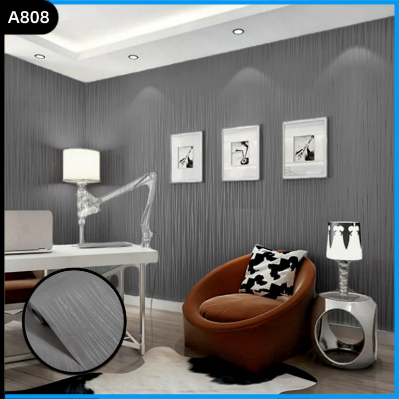 Papel De Parede Não Tecido Moderno E Simples Reforçado Com Listras Sólidas E Respiráveis Premium Cinza Escuro 5 Metros