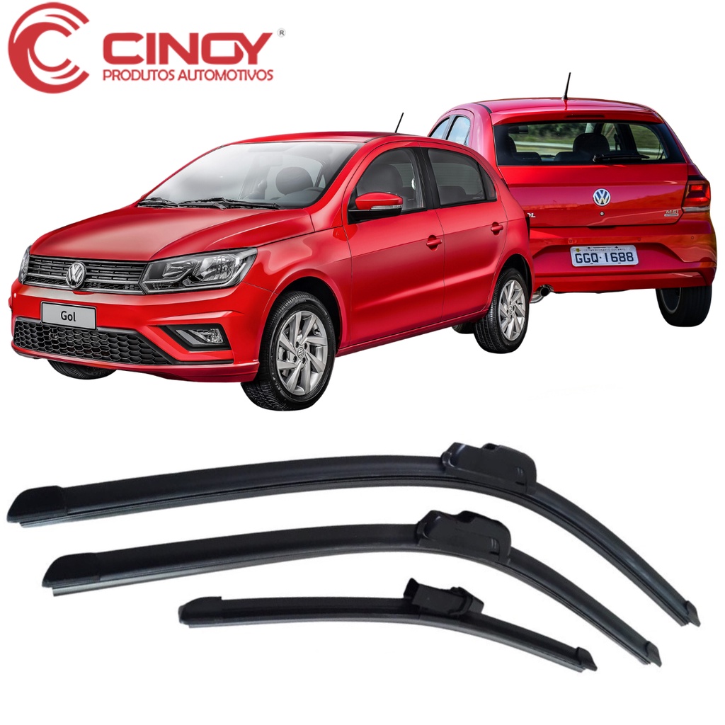 Kit de 3 Palhetas para Limpador de Parabrisa Dianteiro + traseiro para Gol G6 2013 2014 2015 2016 2017 2018 2019 2020 2021 2022