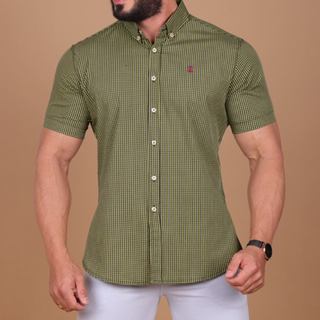 Camisa Gola Micro Xadrez Slim Fit Manga curta 100% Algodão Envio Imediato