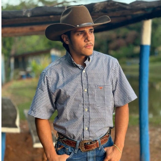 Camisa Xadrez Country Manga Curta Bolso Botão na Gola Lida de Boiadeiro
