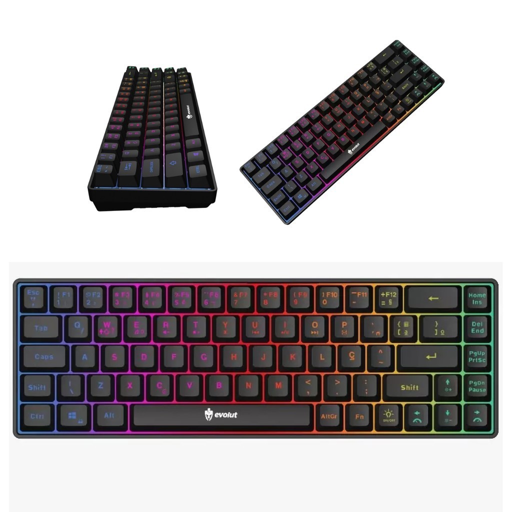 Teclado Gamer EG211 Evolut ABNT2 Rainbow Fay 60 Semi Mecanico com RGB Cores Fixas para Jogos CS, Valorant e muito mais.