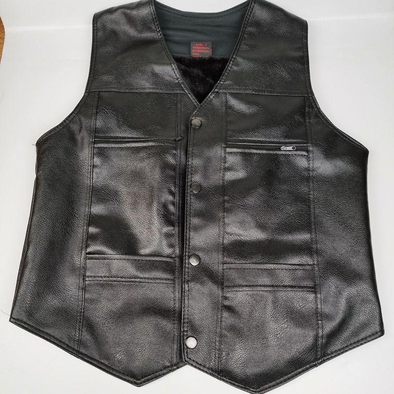 Colete De Couro Roupa Exterior/Moda Casual/Colete grande com decote em V/Pelúcia espessada para calor extra