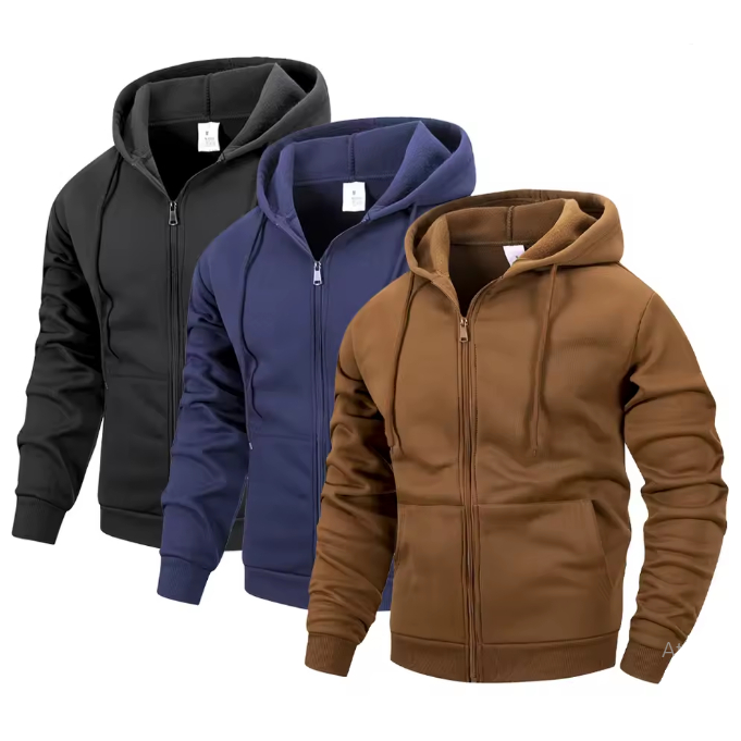KIT 3 BLUSA DE FRIO MASCULINA ESPORTIVA COM CAPUZ / ZIPER E BOLÇO LATERAL IDEAL PARA CORRIDA / ESPORTE / ACADEMIA / TREINO.