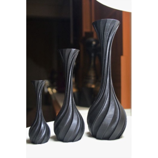 Kit com 3 Vasos de Plantas Artificiais - Design Espiral - Impressão 3D em ABS - Várias Cores