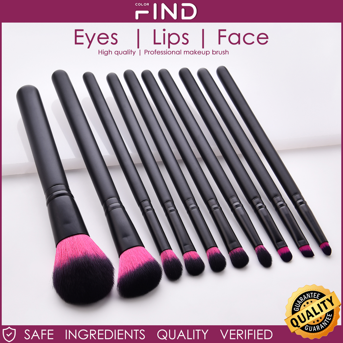 Findcolor 10pcs Conjunto de Escova de Maquiagem Profissional Preta Inclui Escova Blush Escova em Pó Solta Escova para Cílios Escova para Sombra de Olhos Escova de Alto Brilho Conjunto de Viagem de Alta Qualidade Fábrica de Vendas Diretas Presente Doméstic