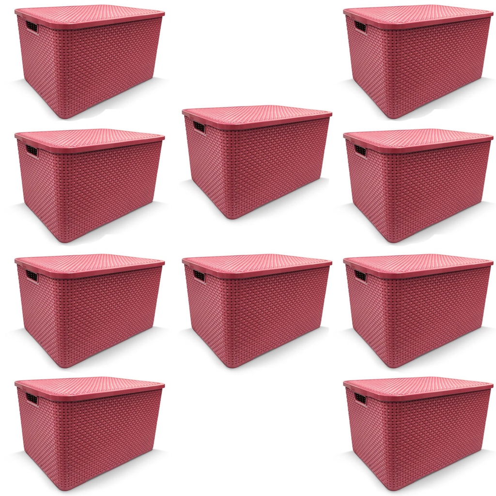 Kit 10 Caixa Organizadora Rattan Decorativa C/ Tampa
