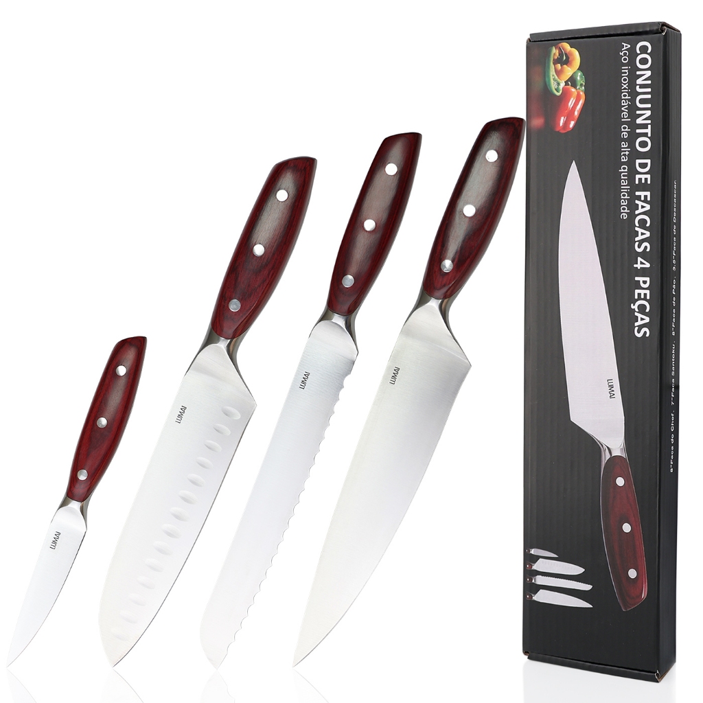 Conjunto de Facas Grandes Aço Inoxidável 4 Peças Afiadas Cozinha Valencia Faca Chef Santoku