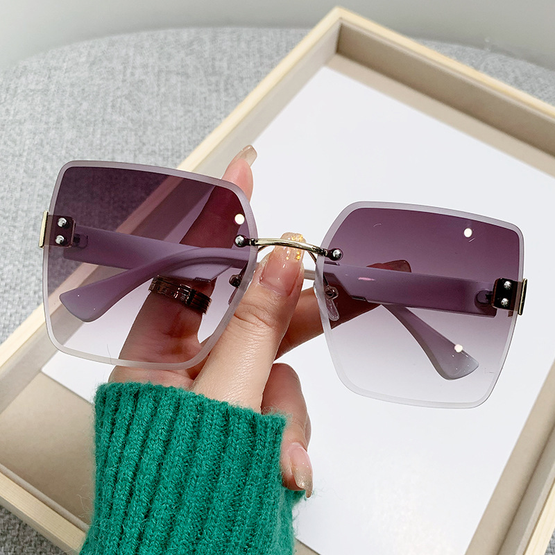 [Óculos De sol sem moldura para senhoras da Moda Square Óculos de sol sem moldura Purple Brown Black Gradient