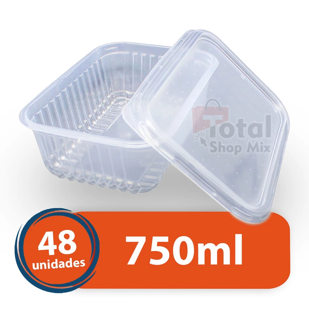 Kit 48 Potes Marmita Descartável 750ml Retangular Fitness Microondas Freezer Fit