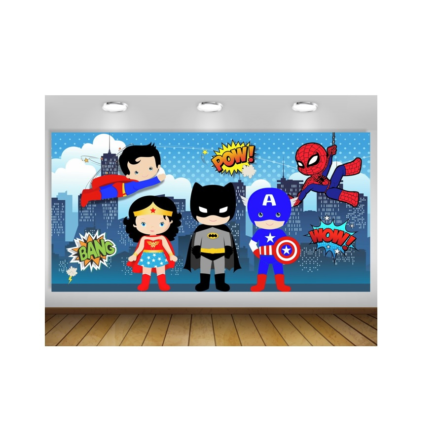 Painel de festa Super Heróis Baby Decoração Hérois Bebê batman homem aranha mulher maravilha