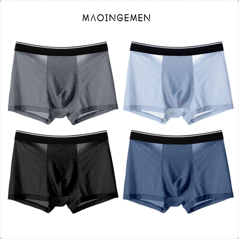 [MAOINGMEN] Kit 4 Cueca Boxer Masculino/ roupa íntima masculina /Ice Silk Ultra-Thin Breathable Antibacterial Graphene Boxer Summer