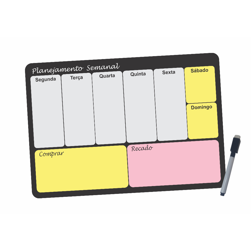 Lousa Planejamento Semanal magnética com imã de geladeira - quadro - planner