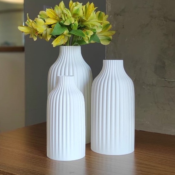 Trio de Vasos Cachepot Vaso Riscado Suave - alta qualidade impressão 3D