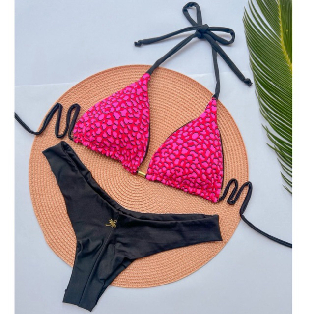 Biquíni Adulto Cortininha Com Bojo Removível Calcinha Fio Duplo Asa Delta Onça Rosa