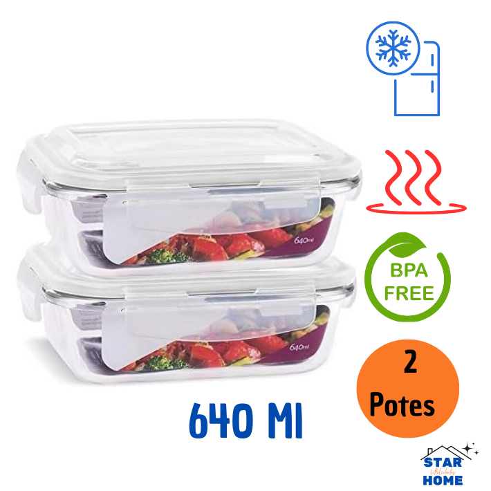 Kit 2 Potes de Vidro 640 ml Hermético Marmita Fit com Tampa 4 Travas