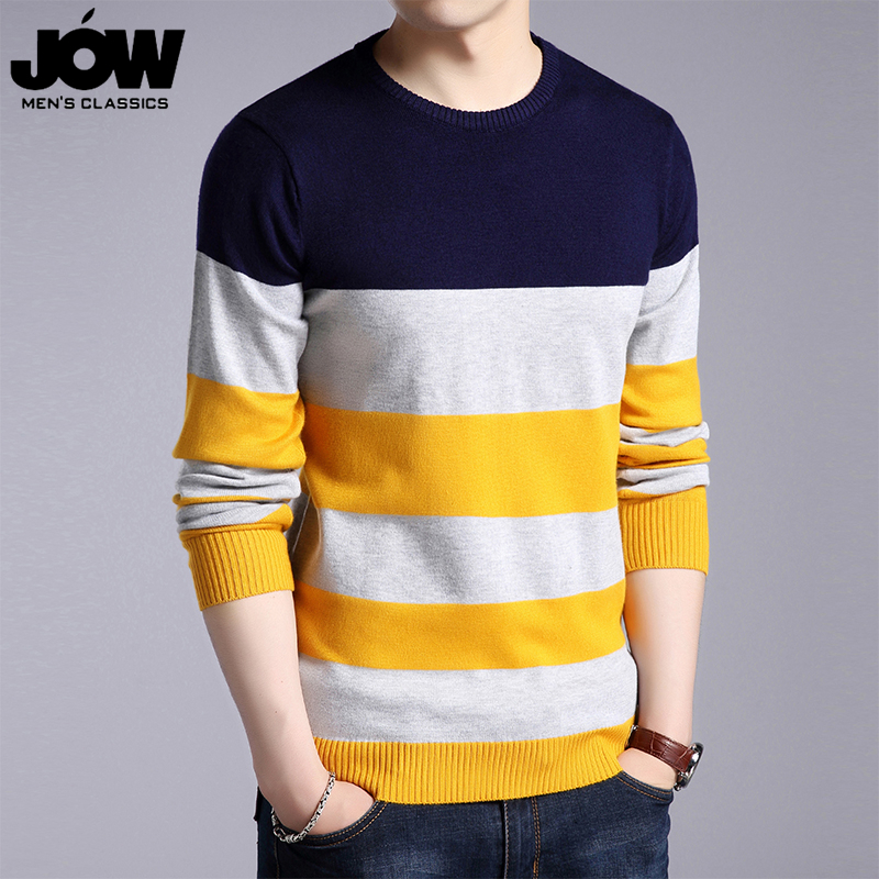 Camiseta De Malha Masculina De Outono Com Listras Listradas Homens Manga Comprida Casual De Gola Redonda Estampada