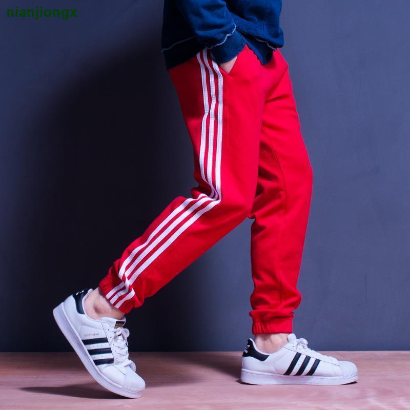 Três Barras Vermelhas Calças Esportivas Masculinas Primavera Outono Listras Largas Combinam Com Tudo Punho De Rua Vestem Casual