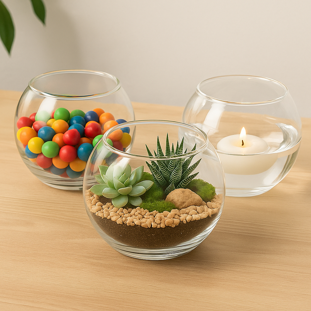 Kit 3 Mini Aquário Minimalista Vaso Vidro Redondo 600ml 9,5x8cm Decoração Terrário Vela Lembrancinha