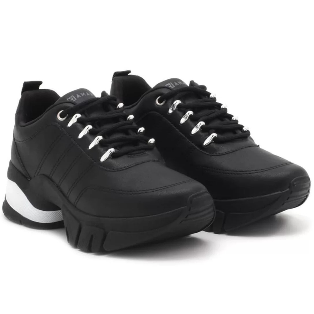 Tênis Feminino Ramarim Sneaker Dad Chunky 2480102 Brilho Preto